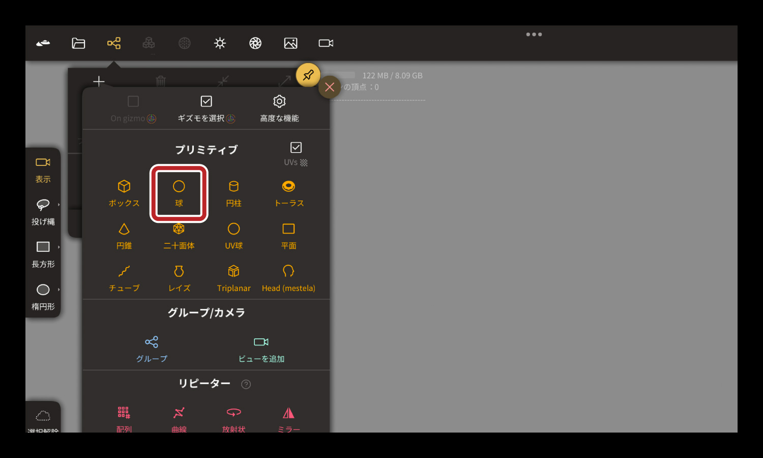 プロジェクト内に「球」を用意しました。