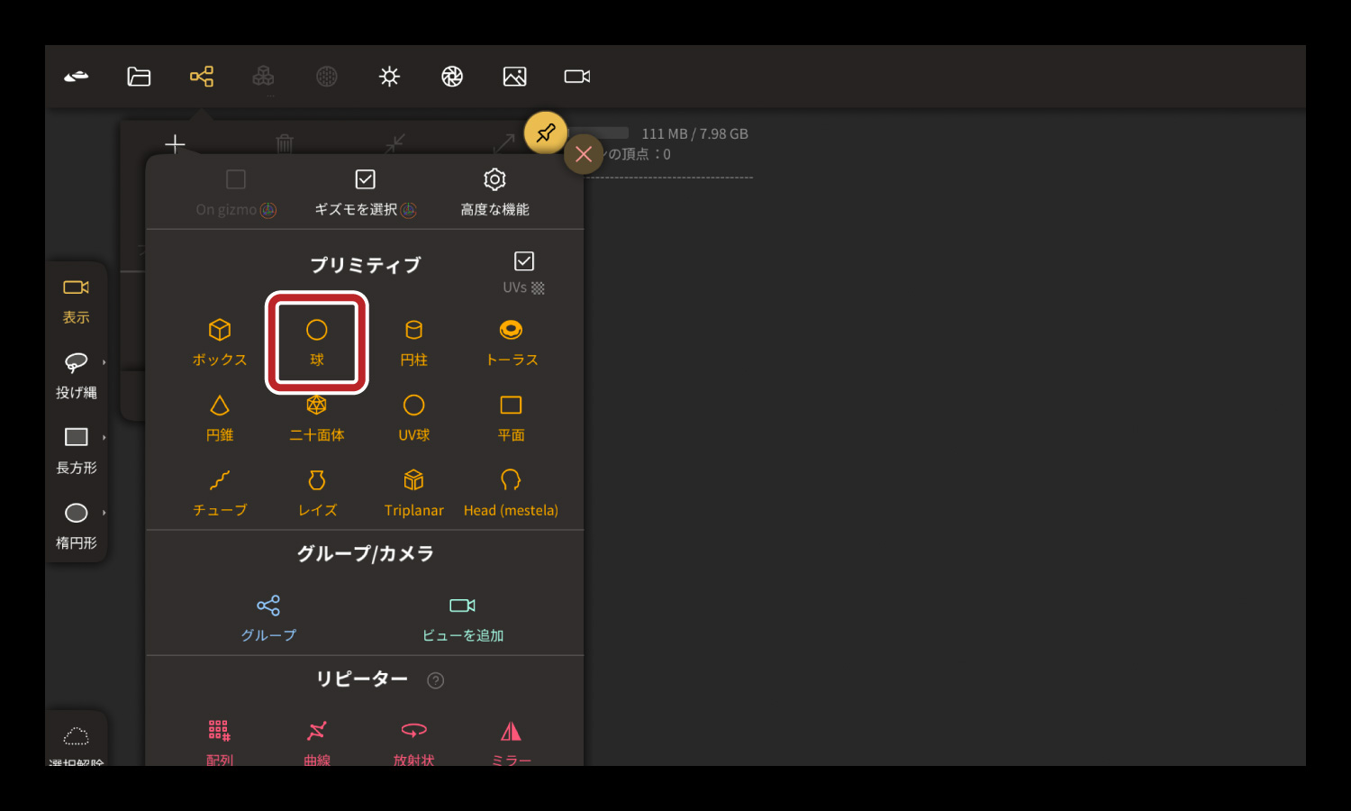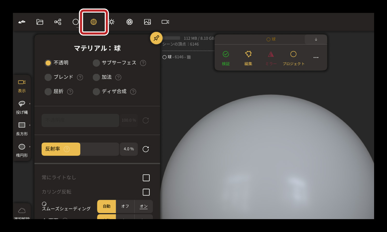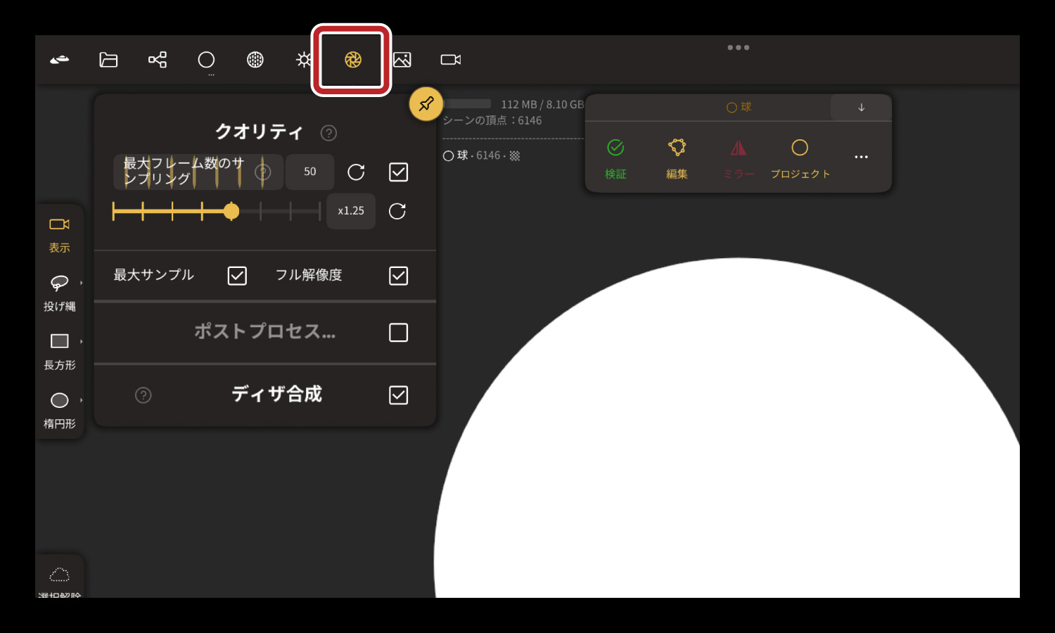 プロジェクト内に「球」を用意しました。