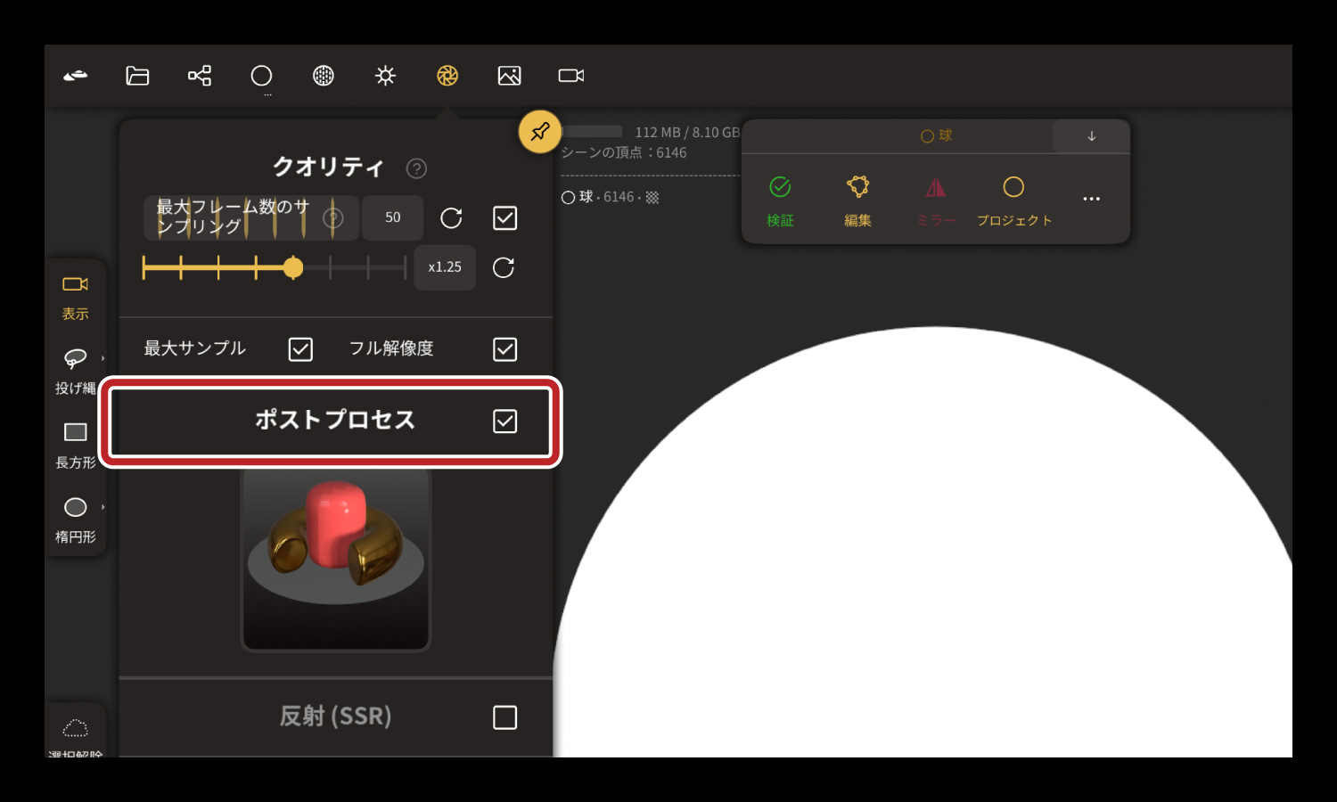 「ポストプロセス」のウィンドウが開きます。