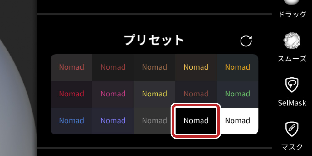 少し下にスクロールすると「プリセット」の項目が出てくるので、